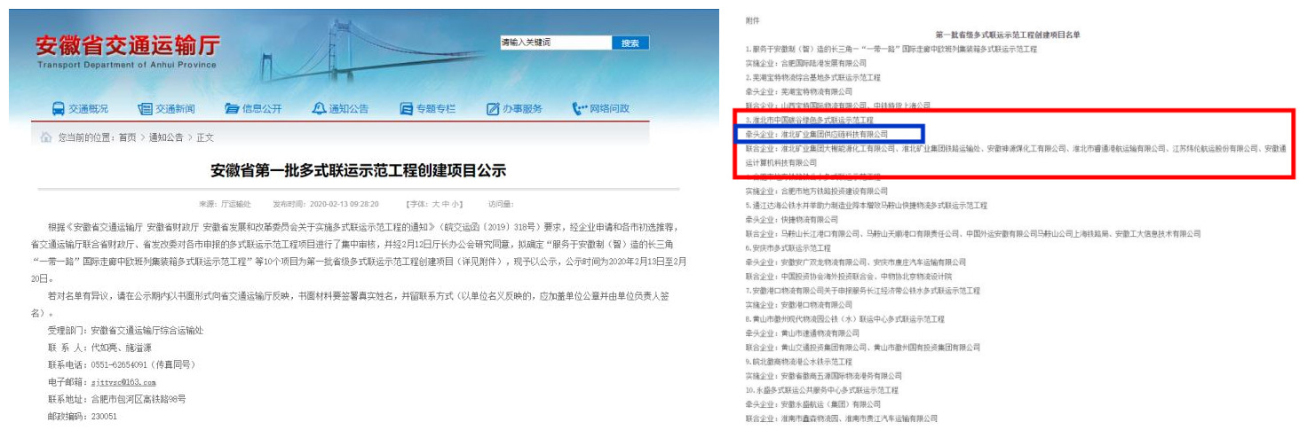 供应链科技有限公司申报的“淮北市中国碳谷绿色多式联运示范工程”项目成功通过省交通运输厅、省财政厅、省发改委审核,以全省第三名的优异成绩入选安徽省第一批多式联运示范工程创建项目,全省共计10家单位入选。