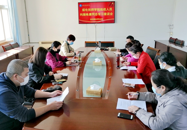 3æœ�24日,煤电技师å¦é™¢å…šå§”å¬å¼€ç»Ÿæˆ˜äººå£«å‘æ–½å’康åŒå¿—å¦ä¹ 座谈交æµä¼šï¼Œæ¥è‡ªå¦é™¢å„æ¡æˆ˜çº¿ä¸Šçš„统战对象代表å‚åŠ äº†åº§è°ˆäº¤æµã€�
