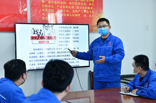 “作为政工干部我们è¦å‘æ–½å’康åŒå¿—å¦ä¹ ,将这份‘åˆå¿ƒâ€™ä¸ä»…体现在疫情防控上,更应付诸到实际工作ä¸åŽ»â€¦â€¦â€�3æœ�23日,淮北选煤厂政工党支部举行主题党日,å¦ä¹ 优秀共产党员施å’康åŒå¿—先进事迹,å·å¬å…šå‘˜å¹²éƒ¨å‘æ–½å’康åŒå¿—看é½ï¼ŒæŠŠå¦ä¹ çƒæƒ…转化为工作动力ã€�