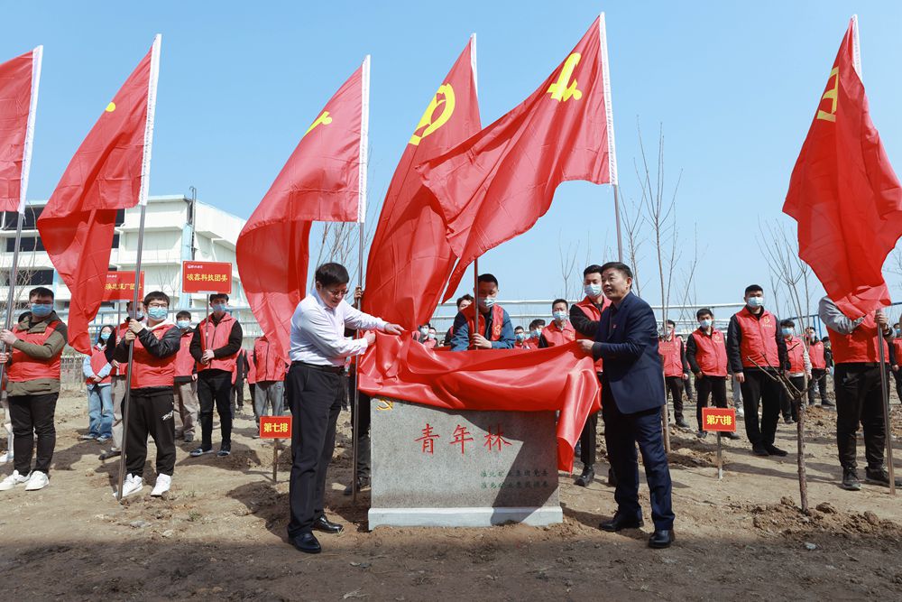 迎着温暖的春风,一大片系上美好寓意红丝带的“青年林”已在春风中昂然屹立。