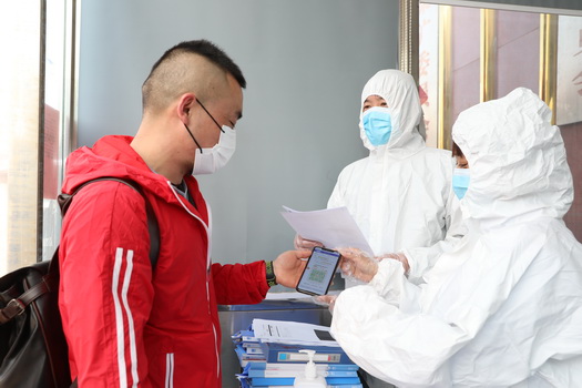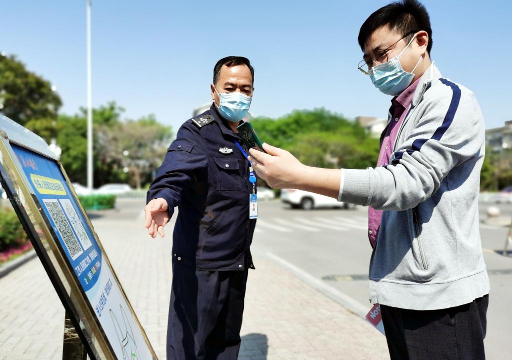 10:15,办公ä¸å¿ƒå¤§åޅ安ä¿äººå‘˜åˆ˜å¿—强检查进入大楼人员行程ç 。他说,è¦å®ˆä½è¿›å…¥å¤§æ¥¼çš„“最åŽä¸€å…³â€ï¼Œä¿è¯ç§©åºå¹³ç¨³ã€å«ç”Ÿå®‰å…¨ã€�