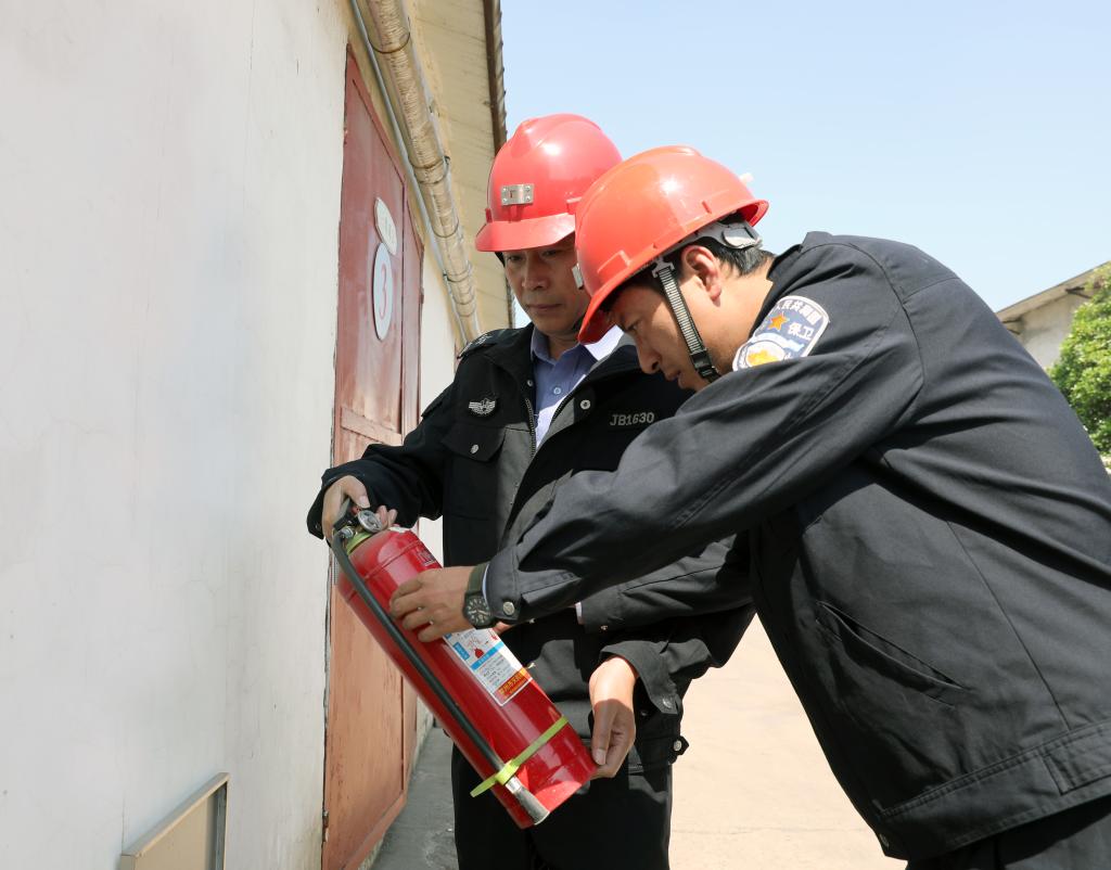 物业公å¸èŒå·¥ç¨‹æ°¸ã€é™ˆç‡•飞检查消防设施。“节日期间的消防安全尤为é‡è¦ï¼Œè¶Šæ˜¯æ”¾å‡äº†ï¼Œæˆ‘们越是è¦åŠ å¤§å·¡æŸ¥åŠ›åº¦ï¼Œåšå†³æœç»æ¶ˆé˜²éšæ‚£ã€‚â€�