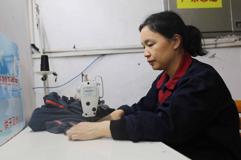 洗衣工æ¨è¡¬å¿ƒæ£åœ¨ä¸ºèŒå·¥ç¼è¡¥å·¥ä½œæœã€‚â€œèŠ‚æ—¥æœŸé—´ä¸€çº¿å¸ˆå‚…ä»¬ä¸æ”¾å‡ï¼Œæˆ‘ä»¬å°±è¦æœåŠ¡åˆ°ä½ï¼ŒåŠæ—¶æŠŠç ´æŸçš„è¡£æœç¼è¡¥å¥½ï¼Œå°±å’Œä»–ä»¬åŠæ—¶æ¶ˆé™¤å®‰å…¨éšæ‚£ä¸€æ ·ï¼Œä¸€åˆ»ä¹Ÿä¸èƒ½è€½æã€‚â€�