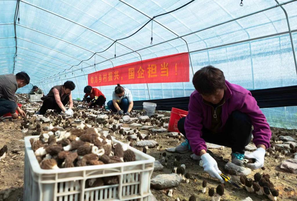3月29日,在po18 援建的砀山县曹庄镇53亩羊肚菌种植基地,村民正忙着采摘、搬运成熟的羊肚菌,一派丰收繁忙景象。