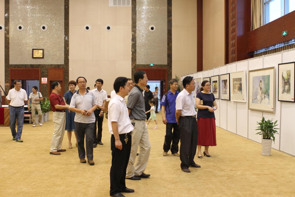 2015年是中国人民抗日战争暨世界反法西斯战争胜利70周年,为大力弘扬爱国主义精神,培育和践行社会主义核心价值观,激发民族自尊心、自信心和自豪感,8月31日至9月4日,淮北矿业工会、矿区文联举办“艺海同心”——淮北煤矿十人画展。8月31日上午,淮北矿业领导袁兆杰、吴长荣、张宇、黄建宇、孙方、程真富参观了画展。