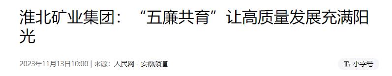 作为çœå±žå›½æœ‰ä¼ä¸šï¼Œæ·®åŒ—çŸ¿ä¸šé›†å›¢åšæŒæŠŠå®‰å¾½çœå›½èµ„å§”å…šå§”å»‰æ´æ–‡åŒ–“å…è¿›â€ï¼Œä¸Žé›†å›¢å…¨é¢ä»Žä¸¥æ²»å…šâ€œäº”è´£â€è”动机制è¿è¡Œã€å…šå»ºå“牌创建ã€å…šæ”¯éƒ¨ä¹¦è®°â€œè¿›ç组ã€è¿›å®¿èˆã€è¿›å¿ƒé‡Œâ€ç‰å…·ä½“工作èžåˆæŽ¨è¿›ï¼Œç€åŠ›å¼ºåŒ–æ—¥å¸¸æ•™è‚²ç®¡ç†ï¼ŒæŠ“好抓实任èŒè°ˆè¯ã€å±¥è´£è°ˆè¯ã€æé†’è°ˆè¯ï¼Œåˆ‡å®žæŠŠåŠŸå¤«ä¸‹åœ¨å¹³æ—¶ï¼Œç»å¸¸æ•²å“æ€æƒ³è¦é’Ÿã€�