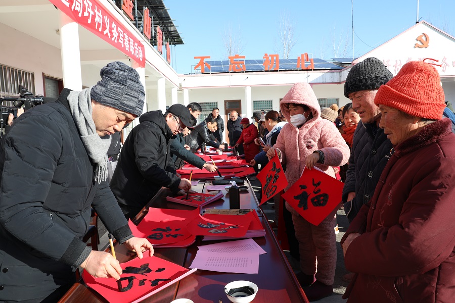 1月23日,po18 工会组织矿区书法家深入定点帮扶乡村——濉溪县铁佛镇周圩村,开启新年义务书赠春联系列活动,现场挥毫泼墨“迎新春、话小康、助振兴”,为村民送上新春祝福和美好祝愿,为建设宜居宜业和美乡村,加快乡村振兴汇聚精神力量。