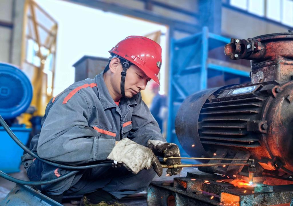 图为机电科机修工王雷æ£åœ¨ç„ŠæŽ¥ç”µæœº