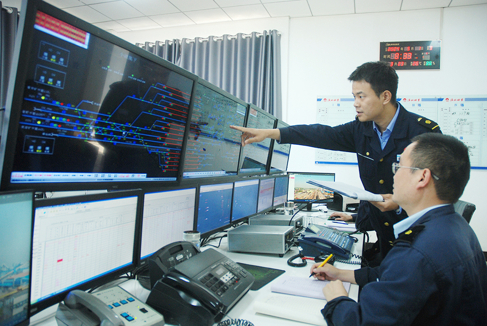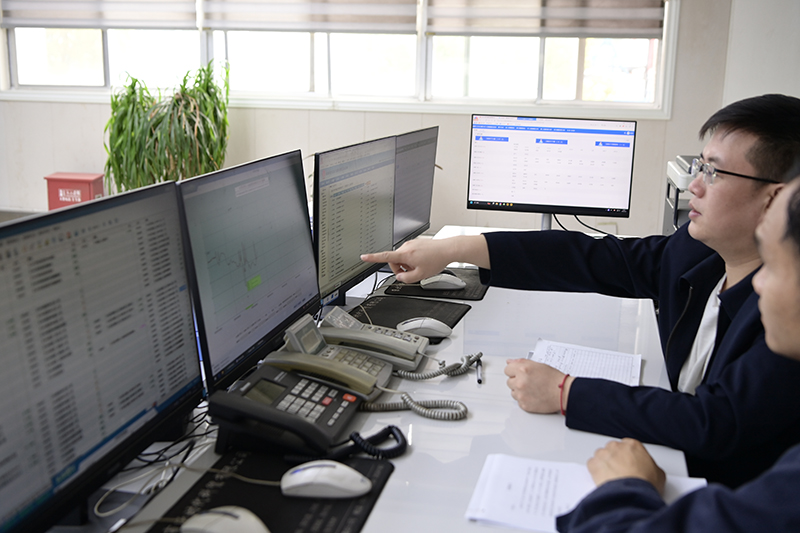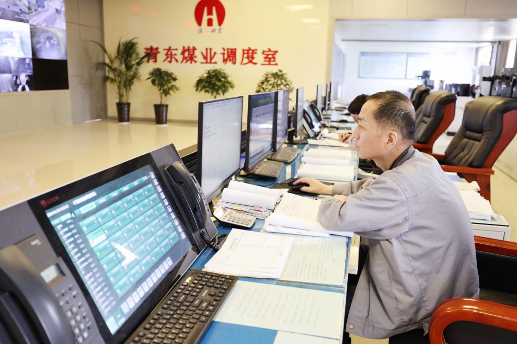 在调度指挥ä¸å¿ƒï¼Œå£è·ƒã€éƒè·¯è·¯ä¸¤äººæ£åœ¨çº¿ä¸Šæ¯”对监测数æ®ã€‚â€œäº”ä¸€â€æœŸé—´ï¼Œä¸ºè®©å·¥å‹äº«å—凿œŸå¿«ä¹æ—¶å…‰ï¼Œä»–们放弃轮休的机会,选择åšå®ˆåœ¨å²—,全天候监测å„类安全数æ®å˜åŒ–,用行动守护矿井安全ã€�