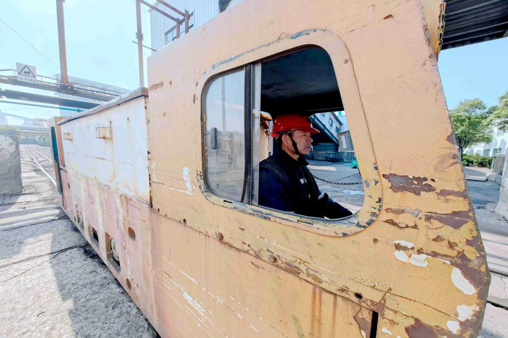 图为è¿è¾“åŒºç”µæœºè½¦å¸æœºåˆ˜å¬æ£åœ¨æ‹‰è¿å³å°†å…¥äº•的物æ–�
