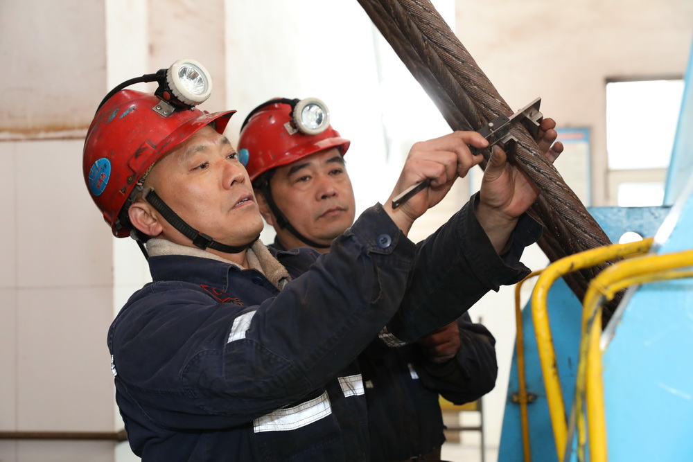 该矿ä¿è¿åŒºèŒå·¥å®‹æ¸…æ°ï¼ˆå·¦ï¼‰ä¸Žå·¥å‹æŸ¥éªŒä¸»æå‡é’¢ä¸ç»³ã€�