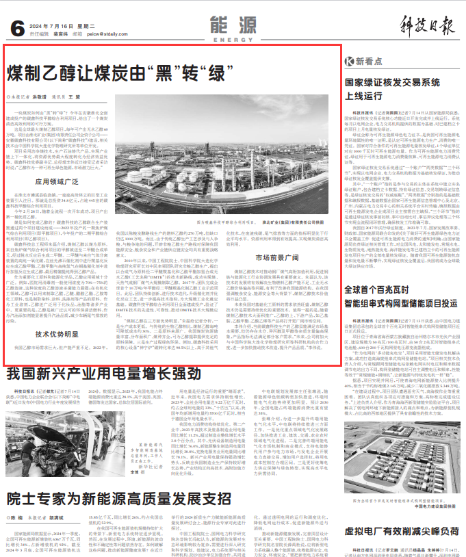 煤制乙醇让煤炭由“黑”转“绿”