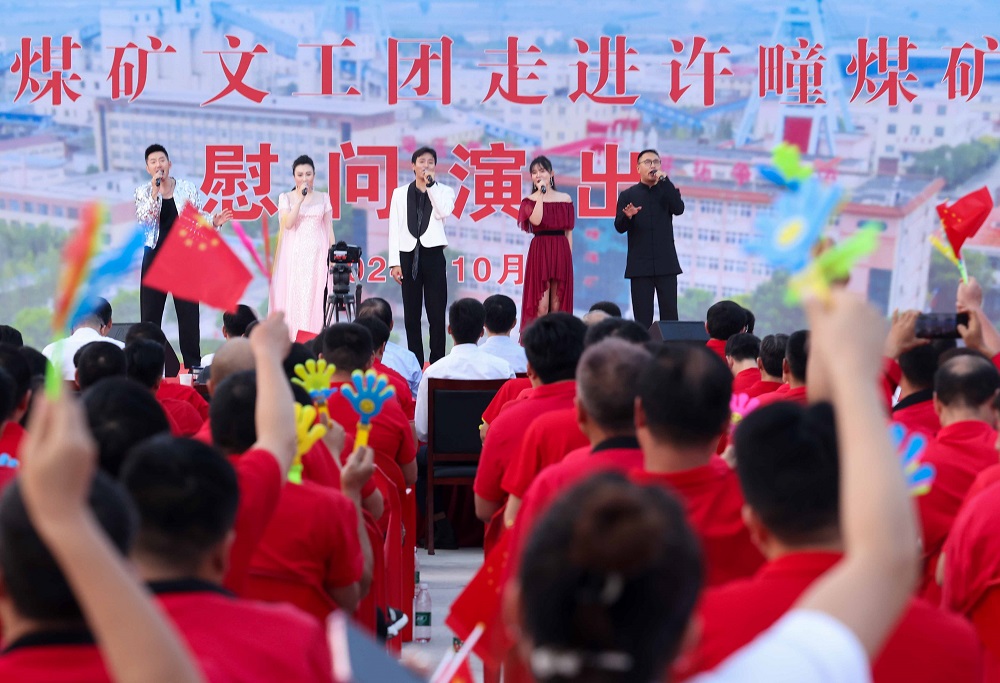 10æœ�15日下åˆï¼Œè®¸ç–ƒçŸ¿å·¥äººæ‘广场内掌声阵阵ã€ç¬‘声䏿–,ä¸å›½ç…¤çŸ¿æ–‡å·¥å›¢èµ°è¿›æ·®åŒ—矿业集团首场慰问演出æ£åœ¨è¿™é‡Œä¸¾è¡Œã€�200ä½™å干部èŒå·¥è§‚看了演出ã€�