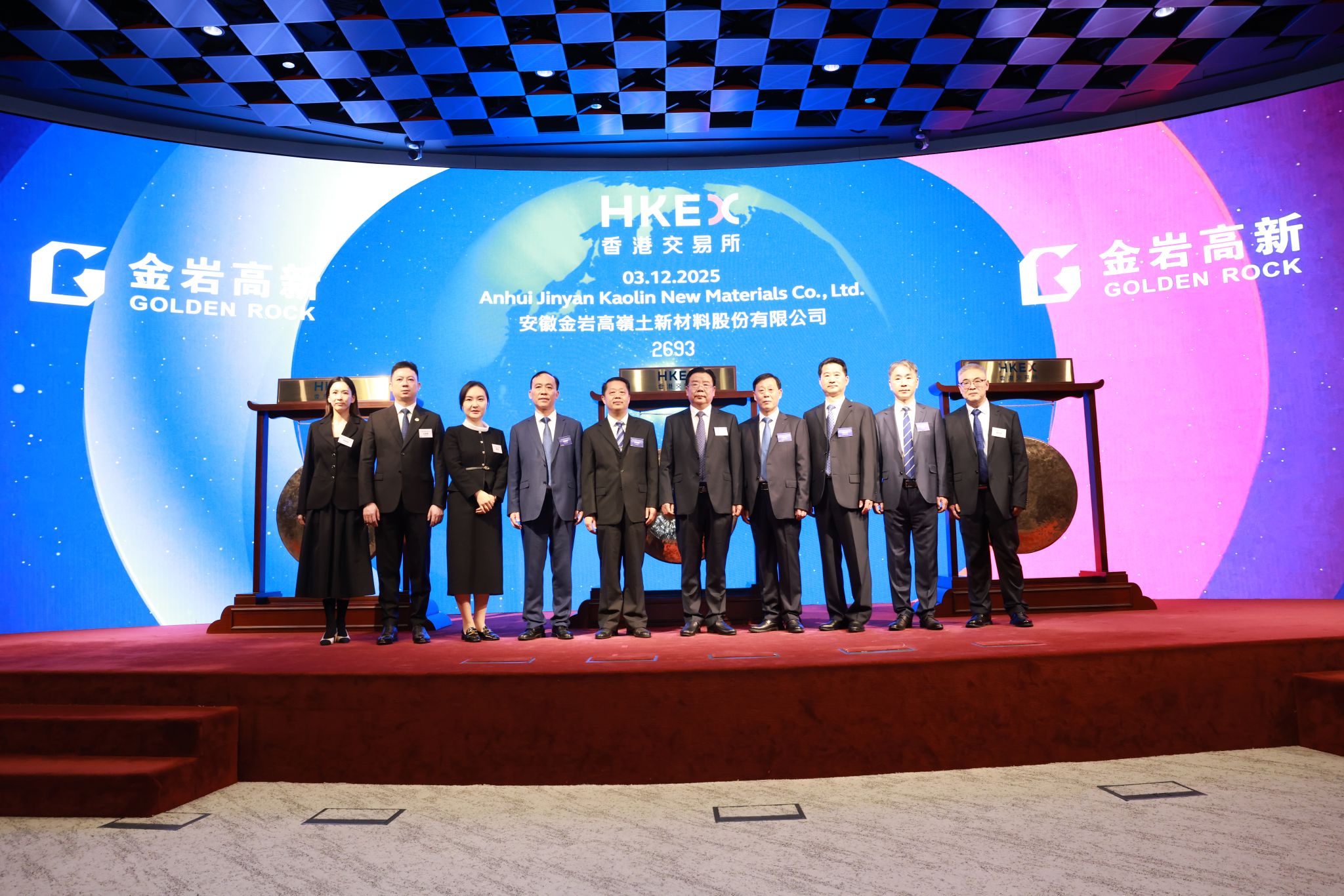 12月3日上午,安徽金岩高岭土新材料股份有限公司(证券简称“金岩高岭新材”,股份代号:02693.HK)在香港联合交易所主板成功挂牌上市。此次登陆国际资本市场,不仅是该公司深化国有企业改革、提升治理效能的重要里程碑,更标志着其在高质量发展征程中迈出了关键一步。作为控股股东,po18