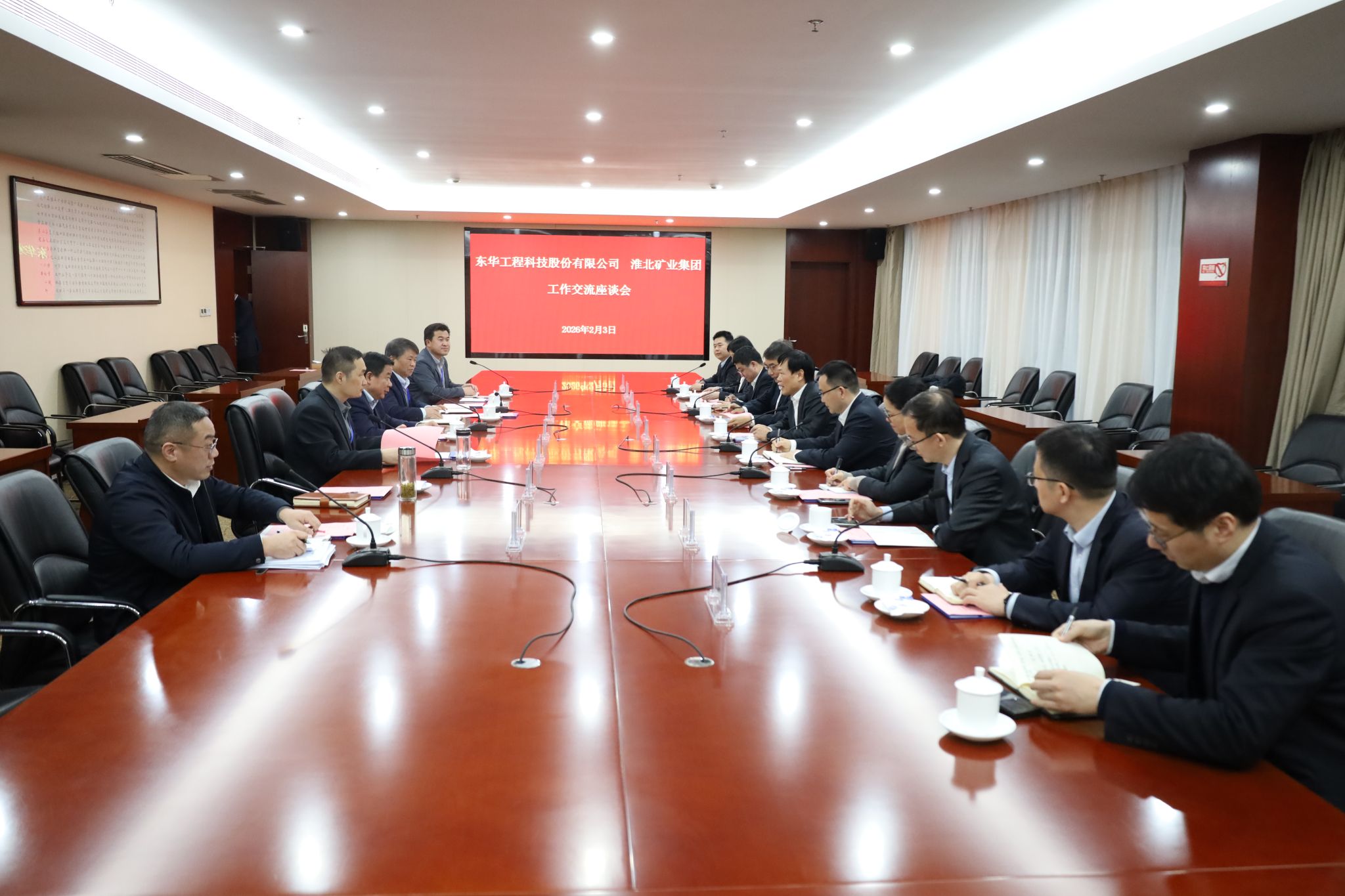 党委书记、董事长、总经理孙方,淮北矿业财务总监殷召峰;东华工程科技公司党委书记、董事长李立新,党委副书记、总经理孟陈周,党委委员、副总经理叶平,以及双方相关部门负责人参加座谈。