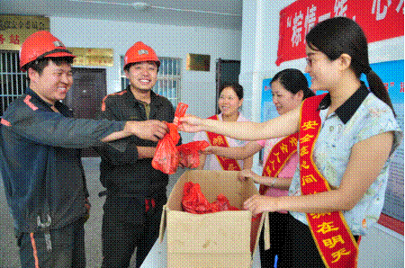 5æœ�26æ—¥ä¸åˆï¼Œç¥žæºç…¤åŒ–工公å¸å·¥ä¼šç»„织女工å安员在井å£å¼€å±•“端åˆä½³èŠ‚çˆ±æ„æµ“,åå®‰ç²½æƒ…åŠ©å®‰å…¨â€æ…°é—®æ´»åŠ¨ï¼Œä¸ºå¹¿å¤§çŸ¿å·¥é€åŽ»å®‰å…¨çš„å˜±æ‰˜å’ŒèŠ‚æ—¥çš„ç¥ç¦ã€�