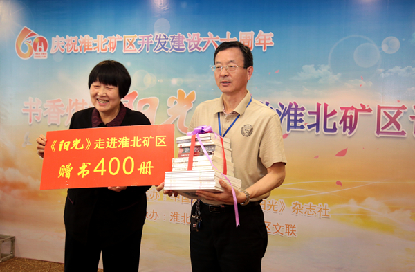 5月15日,庆祝淮北矿区开发建设60周年--《阳光》走进淮北矿区读书会隆重举行。中国煤矿文化宣传基金会理事长、中国煤矿文联副主席庞崇娅,中国煤矿文联副主席、著名作家徐迅,中国煤矿文联副秘书长、《阳光》杂志社社长、主编盛军,《中国煤炭报》《中国艺术报》《清明》等报刊编辑记者及国内诸多知名作家、书画篆刻家、音乐家与淮北矿区部分文艺爱好者代表共同参加了读书会。