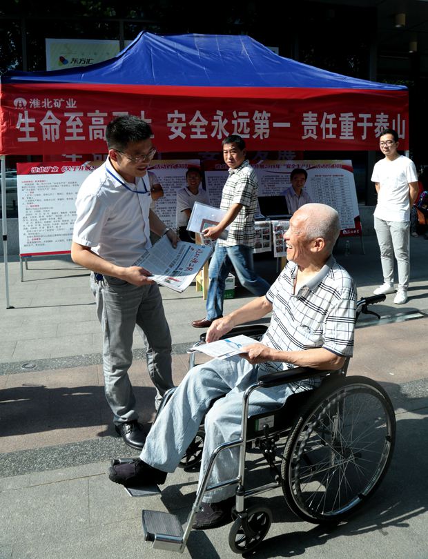 今年6月是全国第17个“安全生产月”,活动主题是:生命至上、安全发展。在活动现场,淮北矿业展出了安全生产专题宣传牌板,悬挂安全生产标语条幅。淮北矿业安监局、党委宣传部、工会(团委)等相关人员为过往市民发放《淮北矿工报》“安全生产月”专刊、安全生产挂图和安全生产知识等宣传资料,播放安全生产微电影、警示教育片,并提供安全生产政策法规、应急救援等方面的咨询服务,吸引了众多市民驻足观看。