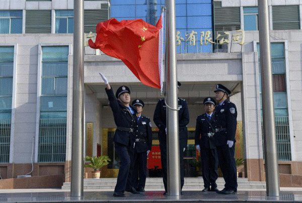首先,进行了å‡å›½æ——仪å¼ã€‚该公å¸å¹²éƒ¨èŒå·¥ç»Ÿä¸€ç€è£…ã€æ•´é½åˆ—队ã€ç²¾ç¥žæŠ–擞,由æ¦ä¿é˜Ÿå‘˜ç»„æˆçš„6å凿——手迈ç€çŸ«å¥æ•´é½çš„æ¥ä¼èµ°å‘凿——å°ï¼Œéšç€â€œå‡å›½æ——ã€å¥å›½æŒâ€å£ä»¤ï¼Œäº”æ˜Ÿçº¢æ——è¿Žç€æœé˜³å†‰å†‰å‡èµ·ã€è¿Žé£Žé£˜æ‰¬ï¼Œå…¨ä½“干部èŒå·¥é¢å¯¹å›½æ——行注目礼。éšåŽï¼Œä¼´éšç€ã€Šæ·®åŒ—矿业之æŒã€‹çš„å“起,å‡èµ·äº†æ·®åŒ—矿业旗ã€�