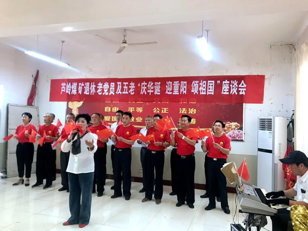 9æœ�27日,芦å²çŸ¿ç»„织退休è€å…šå‘˜åœ¨åŒé€€ä¼šè®®å®¤å¼€å±•“庆åŽè¯žã€è¿Žé‡é˜³ã€é¢‚祖国â€åº§è°ˆä¼š,å…±åŒç•…è°ˆæ‰€å¿†ã€æ‰€æ„Ÿã€æ‰€æ‚Ÿï¼ŒæŠ’å‘å¯¹ç¥–å›½å¯¹çŸ¿å±±çš„æ— é™æƒ…怀。活动ä¸é€€ä¼‘è€å…šå‘˜å…±åŒå”±å“ã€Šæˆ‘çˆ±ä½ ä¸å›½ã€‹ï¼Œç”¨è¿™ç§ç‰¹æ®Šæ–¹å¼å¯¹ç¥–å›½çœŸæƒ…å‘Šç™½ï¼Œå‘æ–°ä¸å›½æˆç«�70åŽè¯žçŒ®ç¤¼ã€‚(å¾ä¸½å¨Ÿï¼‰