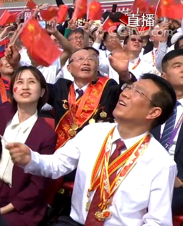 各单位采取多种形式组织干部职工认真收听收看现场直播。当一位熟悉的脸庞出现在电视画面中时,许多单位的会议室响起阵阵掌声,他就是受邀在天安门广场现场观礼的po18