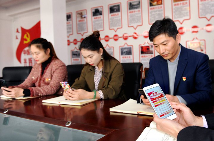 11�1日,朱仙庄矿几名党员正在运用“学习强国”平台认真学习党的十九届四中全会精神。党的十九届四中全会胜利闭幕后,该矿利用广播、电视、网络、学习强国平台等多种形式组织党员干部深入学习全会精神。该矿党员干部纷纷表示,在习近平新时代中国特色社会主义思想的指引下,全面贯彻落实全会精神,立足本职岗位,撸起袖子加油干,奋力推动企业高质量发展。(朱安 摄)