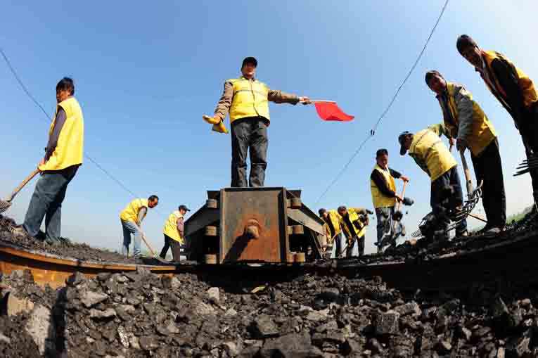 近年来,由于芦岭、朱仙庄塌陷区因矿产量和开采的原因,纷纷进入沉陷活跃期,特别是朱仙庄、王桥、芦岭矿3个塌陷区近4公里的铁路线路,下沉速度频率加快,下沉量大,造成铁路路基下沉,轨道方向、轨距和水平面变化较大,直接危及铁路行车安全。为此,朱仙庄领工区根据坚持轻重缓急的原则,增加塌陷线路巡查频率,密切关注塌陷变化情况,逐个逐项地对塌陷区路段进行有序整治,还采取列车行驶限速、设立防护员、安排巡道工重点巡查等措施,动用机械设备和人工,加强塌陷路段的维护和施工力度,积极做好起拨道、路基捣固、拉轨匀缝、轨平面调整等工序,力争将塌陷区的影响减小到最低,确保矿区铁路运输安全通畅。年初以来,朱仙庄、王桥、芦岭矿三处塌陷线路已分别抬升3米、2.5米、0.8米,回填矸石1.3万吨,道碴1680立方。