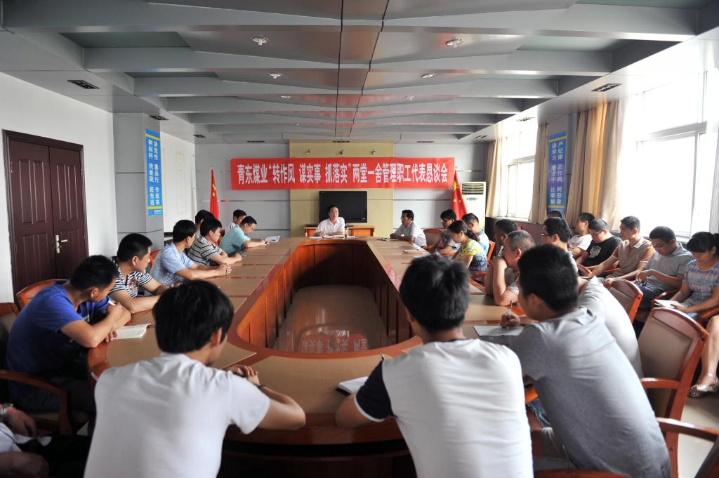 图为青东煤业“转作风 谋实事 抓落实”两堂一舍管理职工代表恳谈会现场。