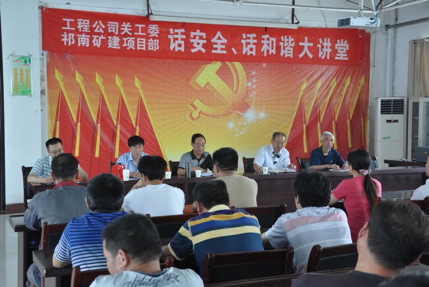 工程建设公司关工委组织开展 “讲安全、话和谐”大讲堂活动,关工委崔怀亭、吴东海、石启良、梁作先、王清文等老同志放弃休息,深入基层宣讲安全,紧紧围绕“讲安全、话和谐”活动主题,分别就牢固树立零死亡理念、践行社会主义核心价值观、走岗位成才之路、宣传贯彻安全1号文,守住安全红线等内容做了精彩的宣讲报告,受到广大职工的好评。