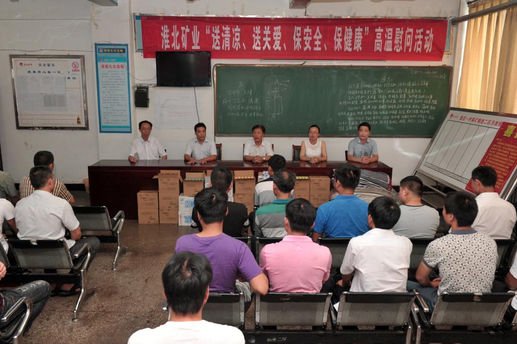 8月4日上午,由淮北矿业工会组成的慰问组一行来到袁店一矿,开展“送清凉、送关爱、保安全、保健康”高温慰问活动。