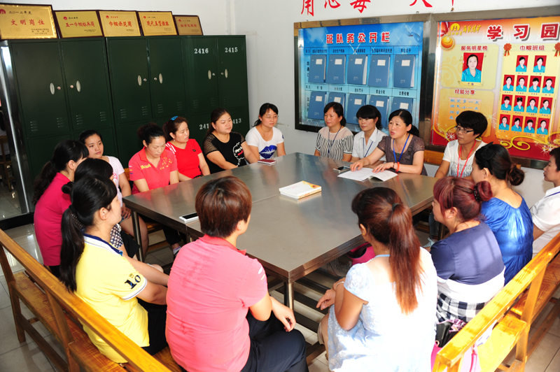 为切实维护女职工权益,发挥女职工代表的监督视察作用,8月5日,矿工会女工部组织部分女职工代表深入到矿灯房班、洗衣机房班进行上岗视察活动,与女职工们就国家“单独二孩”生育政策、《安徽省女职工劳动权益保护征求意见稿》,以及淮北矿业2015年度工会女职工工作专题调查问卷等内容进行座谈讨论。