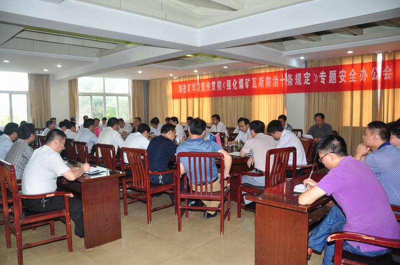 8月10日下午,海孜矿在二楼调度会议室召开学习宣传贯彻《强化煤矿瓦斯防治十条规定》专题安全办公会。副总及以上矿领导,各职能部室负责人,基层各单位以及驻矿外委施工队伍主要领导参加了会议。