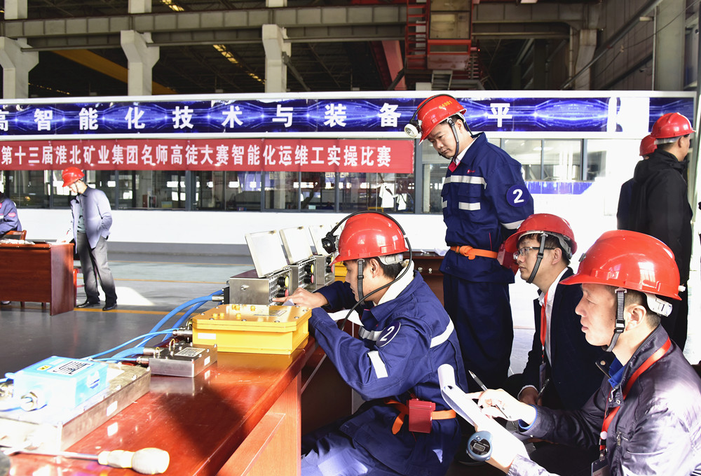 第十三届“名师高徒”大赛智能化运维工实操比武在生产装备分公司龙湖修造项目部电液控车间举行,来自淮北矿区各单位的7对师徒参与角逐。