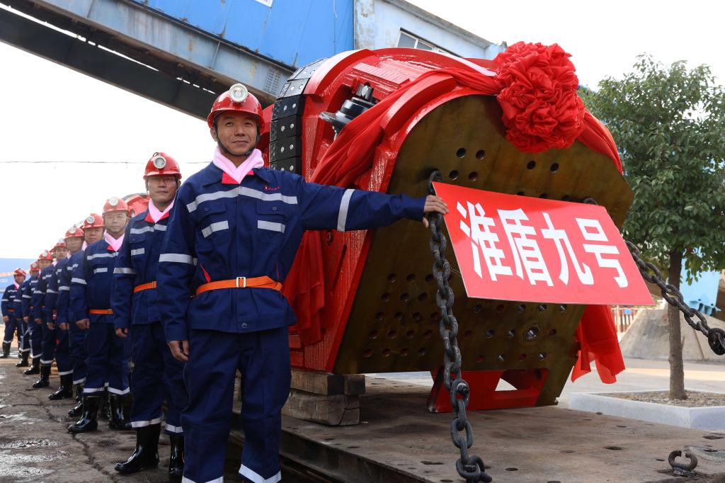 据工程处负责人介绍,此次入井安装的“淮盾9号”将在该矿33采区专用回风下山投入使用,设备型号EQC4880型,巷道设计为1300米16°下山施工。该型盾构机在前8台盾构机机型基础上,设备的功能、结构、质量及形态等方面均进行了改进和升级,改进后的“淮盾9号”在深井软岩巷道支护、大倾角下山盾构快速掘进提效中,将较好地发挥盾构施工安全、高效、集成、环保的效能优势,为矿井采掘有序接替提供保障。