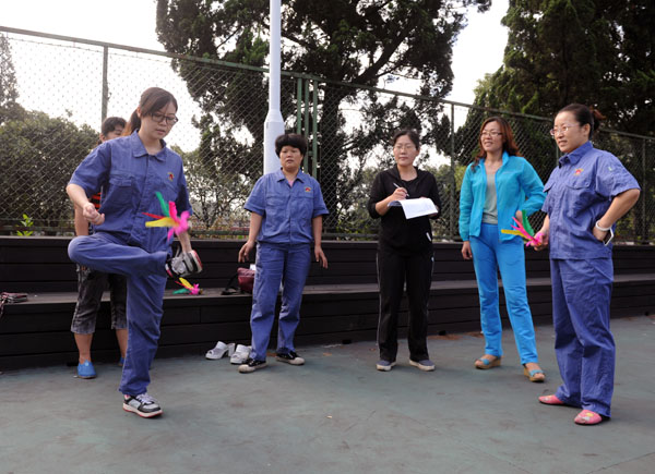 9月29日,淮北选煤厂一名女职工正进行踢毽子趣味游戏。国庆节来临,为使职工在紧张工作之余放松心情,缓解压力,该厂工会利用停产检修时间组织开展了踢毽子、定点投篮等文体活动,丰富职工文化生活,营造和谐向上的节日氛围。