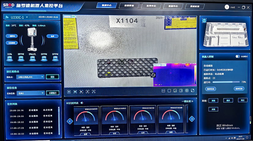 U230c智能机器人系统以轨道式巡检机器人为核心,由软件系统、轨道系统、供电通讯系统,机器人本体、分布式感知组件及其它相关设备组成,集移动视频巡检、红外测温、环境测控、分布式感知、数据智能分析等功能为一体,可在操作室设置系统服务器,实现对高压配电室巡检区域设备的实时监控、数据分析管理存储检索等功能,在对高压配电室高压开关柜进行自上而下全面巡检的同时,其仪器舱内集成多种检测传感器,对高配室的开关柜和供电环境条件进行综合检测,包括视觉分析、红外热成像检测等。投入使用后,可提高供电系统的巡检频率和巡检质量,提升关键区域的智能化运维水平,实现配电室无人、少人值守。