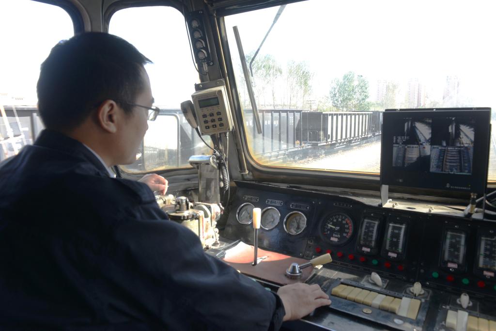 图为 机车司机操纵机车安全运行