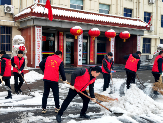 清晨7点多钟,é’年志愿者们迅速集结,顶ç€ä¸¥å¯’,é½å¿ƒå力,高效é…åˆï¼Œå…¨åŠ›é“²é™¤è¿›å‡ºçŸ¿ä¸»å¹²é“的积雪,为èŒå·¥æ¸…ç†å‡ºäº†ä¸€æ¡æ¡â€œå®‰å…¨é€šé“â€ï¼Œé²œçº¢çš„志愿者马甲也为冬日的矿井增添了一抹抹暖色ã€�