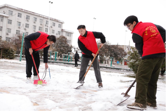 é’年志愿者们冒ç€ä¸¥å¯’,或æ¡å¸šæ‰«é›ªã€æˆ–挥锹铲雪,全力清除路上的积雪和暗冰。铲雪ã€é™¤å†°ã€æ¸…è¿ï¼Œå„个岗ä½ååŒä½œæˆ˜ã€é…åˆé»˜å¥‘ï¼ŒåŒæ—¶æ¸©é¦¨æé†’èŒå·¥â€œå°å¿ƒè·¯æ»‘â€â€œæ…¢ç‚¹èµ°ï¼Œæ³¨æ„安全â€ï¼Œé’年志愿红æˆä¸ºäº†å†°å¤©é›ªåœ°é‡Œä¸€é“é“ä¸½é£Žæ™¯çº¿ï¼Œä¸ºå¯’å†·å¤©æ°”å¢žæ·»äº†åˆ«æ ·çš„ç¾Žä¸½ã€‚ç»è¿‡ä¸æ‡ˆåŠªåŠ›ï¼Œé’年志愿者们将主è¦é€šè¡Œé“è·¯ã€åŠžå…¬æ¥¼å‰ç‰åŒºåŸŸçš„积雪暗冰全部清ç†å¹²å‡€ï¼Œä¿éšœå¹¿å¤§å¹²éƒ¨èŒå·¥å‡ºè¡Œå®‰å…¨ã€�