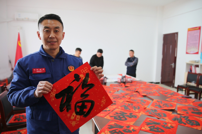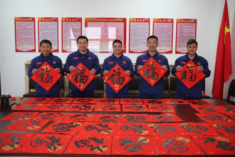春节将至,近日,救护大队开展“百ç¦è¿Žæ˜¥â€é€æ˜¥è”活动,邀请淮北市知å书法家现场挥毫泼墨,为å„级指战员é€ä¸Šæ»¡æ»¡çš„节日ç¥ç¦ã€�