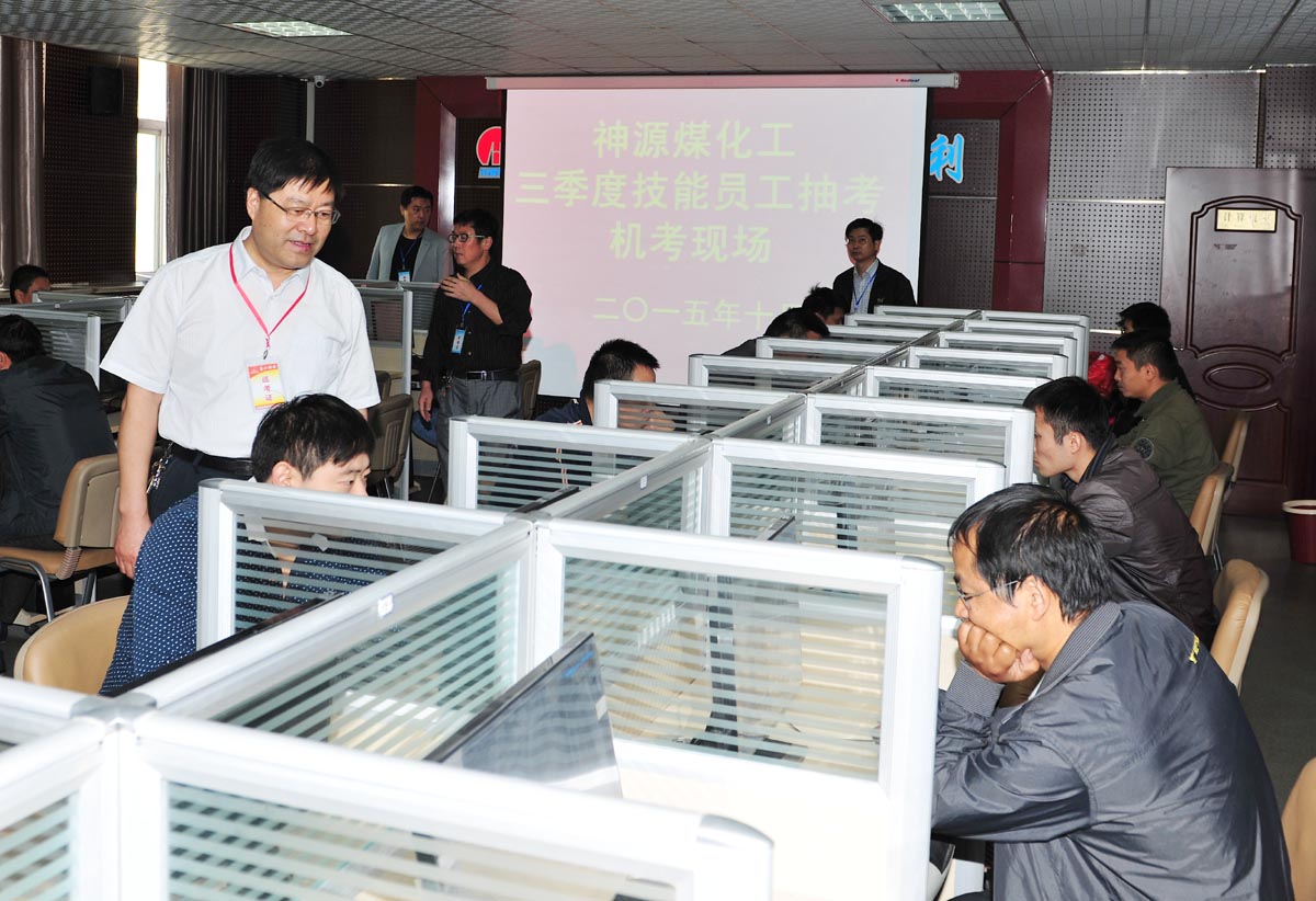 10月10日上午,神源煤化工22名采掘电钳工在职教楼微机室进行理论考试答卷,接受“大考”。这是该公司按照集团公司淮矿劳【2015】143号文和淮矿劳便【2015】254号《关于组织三季度员工抽考的通知》要求组织开展的理论考试,意在提升员工安全素质。