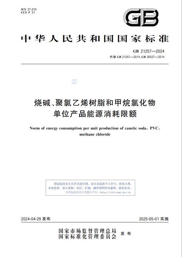 日前,在国家标准化管理委员会的2024年第7号公告中显示,由华塑股份牵头制定的国家标准《烧碱、聚氯乙烯树脂和甲烷氯化物单位产品能源消耗限额》(标准号GB 21257-2024)正式发布,并将于2025年5月实施。这是继该公司参与制定的国家标准《消光制品用聚氯乙烯树脂》(标准号:GB/T 42917-2023)在2024年3月1日实施后取得的又一重要成果。