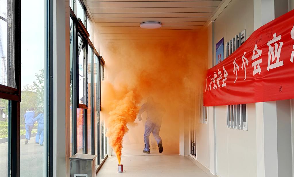 “现场发烟罐冒出的呛人烟气,让我们对火灾的危险性有了更深的认识,也让我们明白了应急演练的重要性和必要性。”动力车间李岩感慨道。