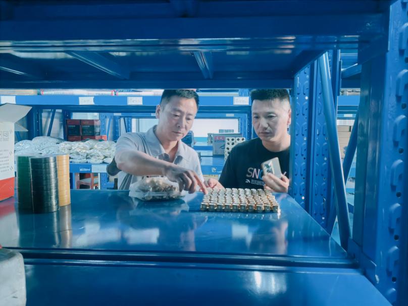 走进袁店一矿井口超市,墙面上张贴着一块巨大的“合规管控、科学保供”牌匾,一排排货架整齐站立着,螺母、弹簧垫圈、螺钉、手动葫芦等小件物资分类有序排列在货架或地铺上。几名准备下井工人师傅正在领取六角螺母等物品。
