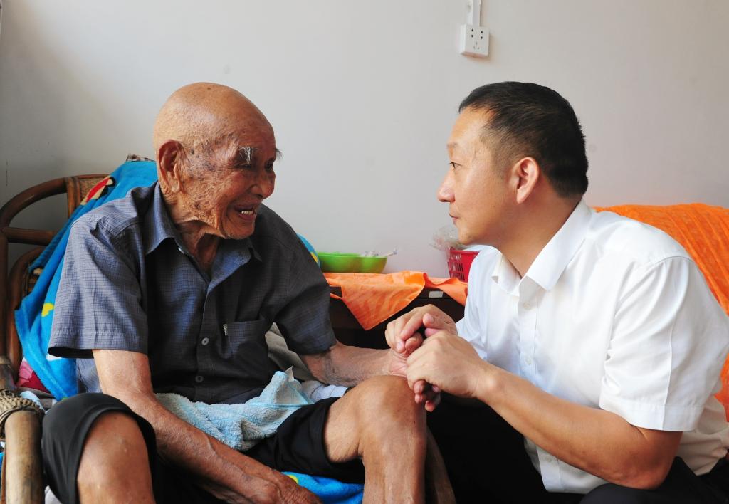 “八一”建军节来临之际,7月30日上午,神源煤化工志愿者在“中国好人”周杨的带领下联合当地退役军人服务站一行走访慰问了矿区附近的百岁老兵,向他们传递来自党和淮北矿业的关心关怀并致以节日的问候和祝福。