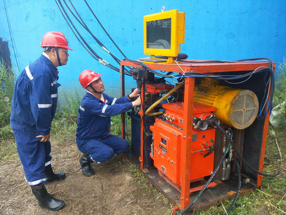 “现场作业中,施工人员不进入煤仓,只需操作电控系统启动液压系统,通过对电控阀的控制,油液通过高压旋转接头经高压管路输送至动力头马达,以此驱动马达旋转,靠旋转的马达带动摆锤进行煤仓清理作业,从根本上消除了清仓过程中意外掉落煤炭造成人员伤害的隐患。”据该公司副总经理路万里介绍,煤仓上方还装有视频探头,配备视频监控显示屏,实现远程可视化操作,更加安全高效、直观精确。