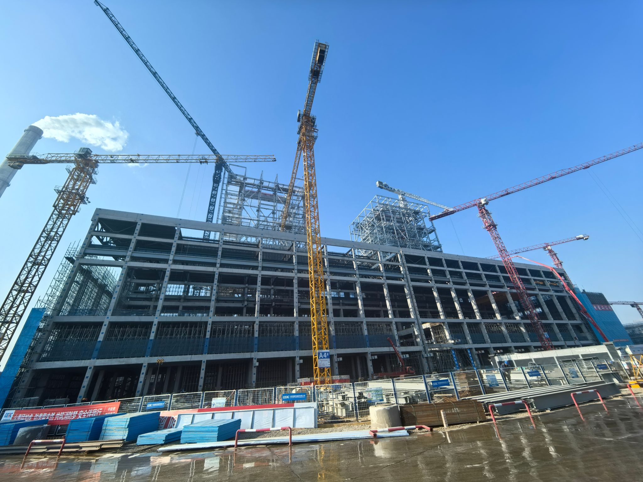 截至目前,集控楼、主厂房已封顶,锅炉大板梁吊装完成,冷却塔筒壁建至距地面50米高,烟囱筒壁、脱硫塔等重要工程正按节点推进,完成投资超19亿元。项目建成运营后,预计年发电量59.4亿度,年产值25亿元,成为安徽电网主力电厂,为安徽经济社会发展提供重要能源保障。