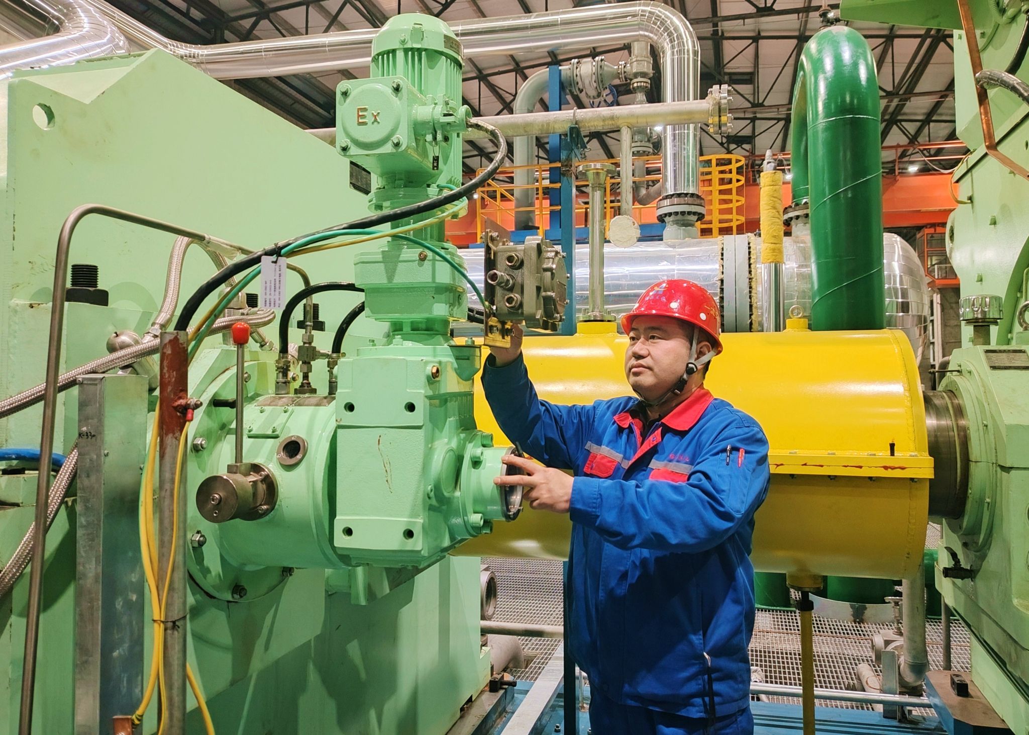 工匠大师杨庆负责本次电气仪表安装调试,夜幕的灯光照亮了他奋斗的身影。