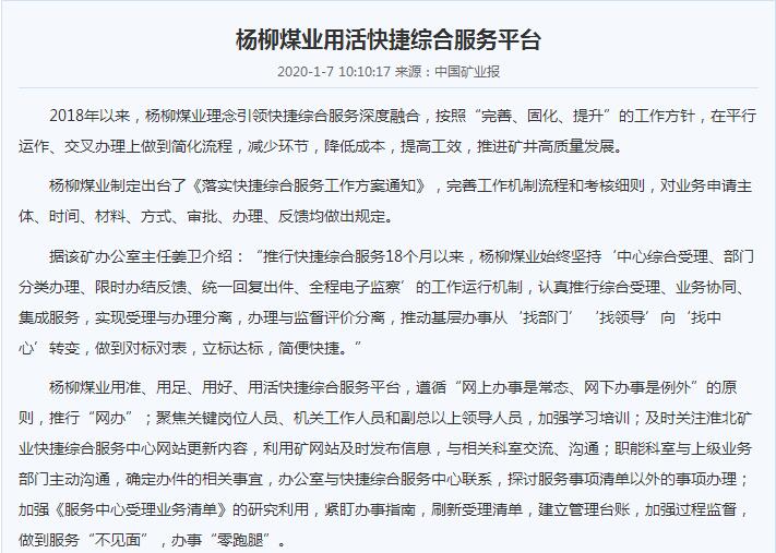 《中国矿业报》:po18 杨柳煤业用活快捷综合服务平台