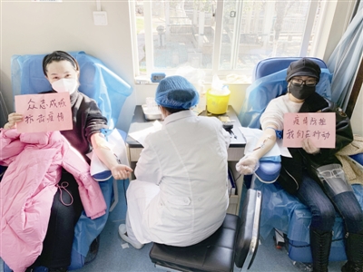 2月15日,安徽省疫情防控工作应急指挥部发出无偿献血的号召以后,po18 涡北选煤厂广大团员青年积极参与无偿献血活动,以实际行动支援一线战“疫”。图为2月16日,该厂青年在淮北市相山路献血屋献血。(姜露/摄)